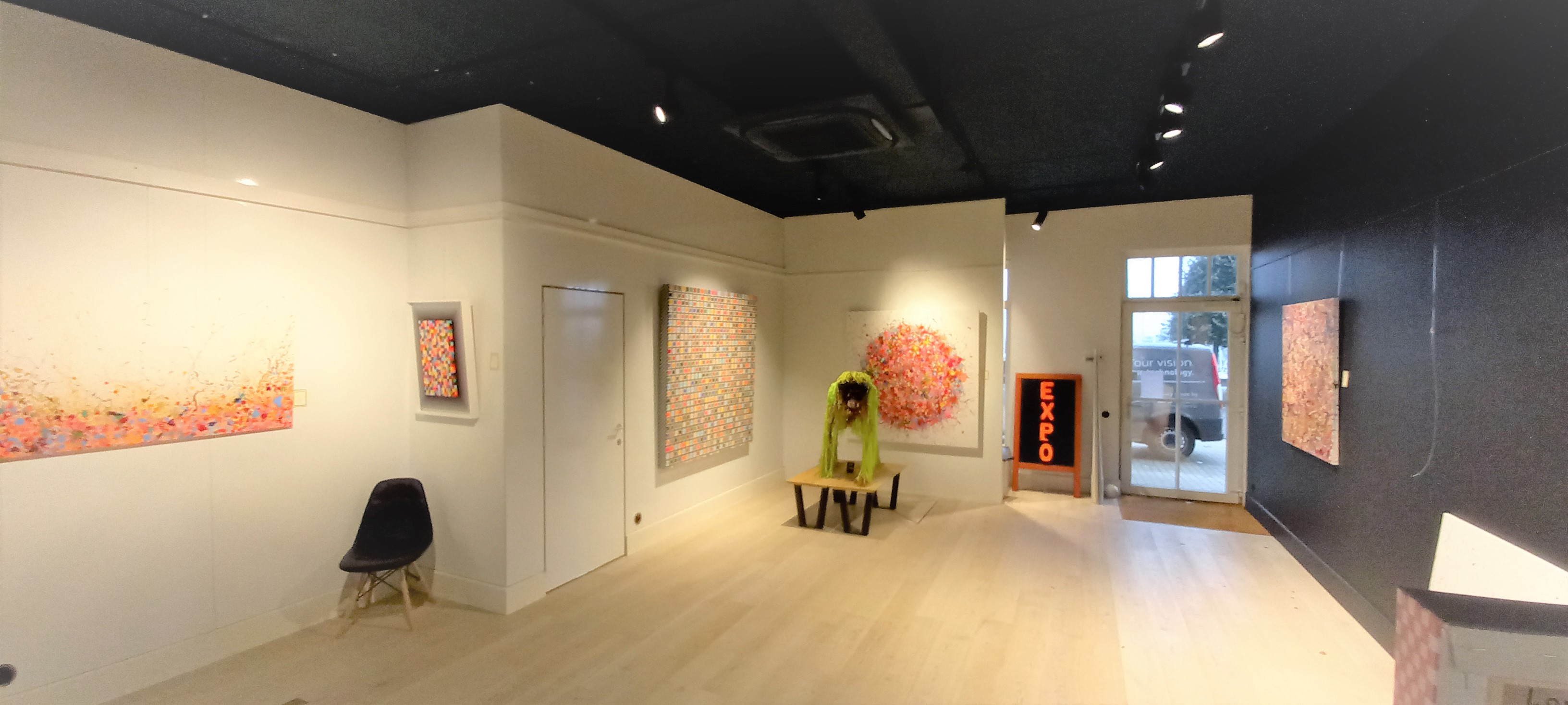 Wij mochten de verlichting leveren voor de twee expo ruimtes van Denis De Gloire Schilderijen.