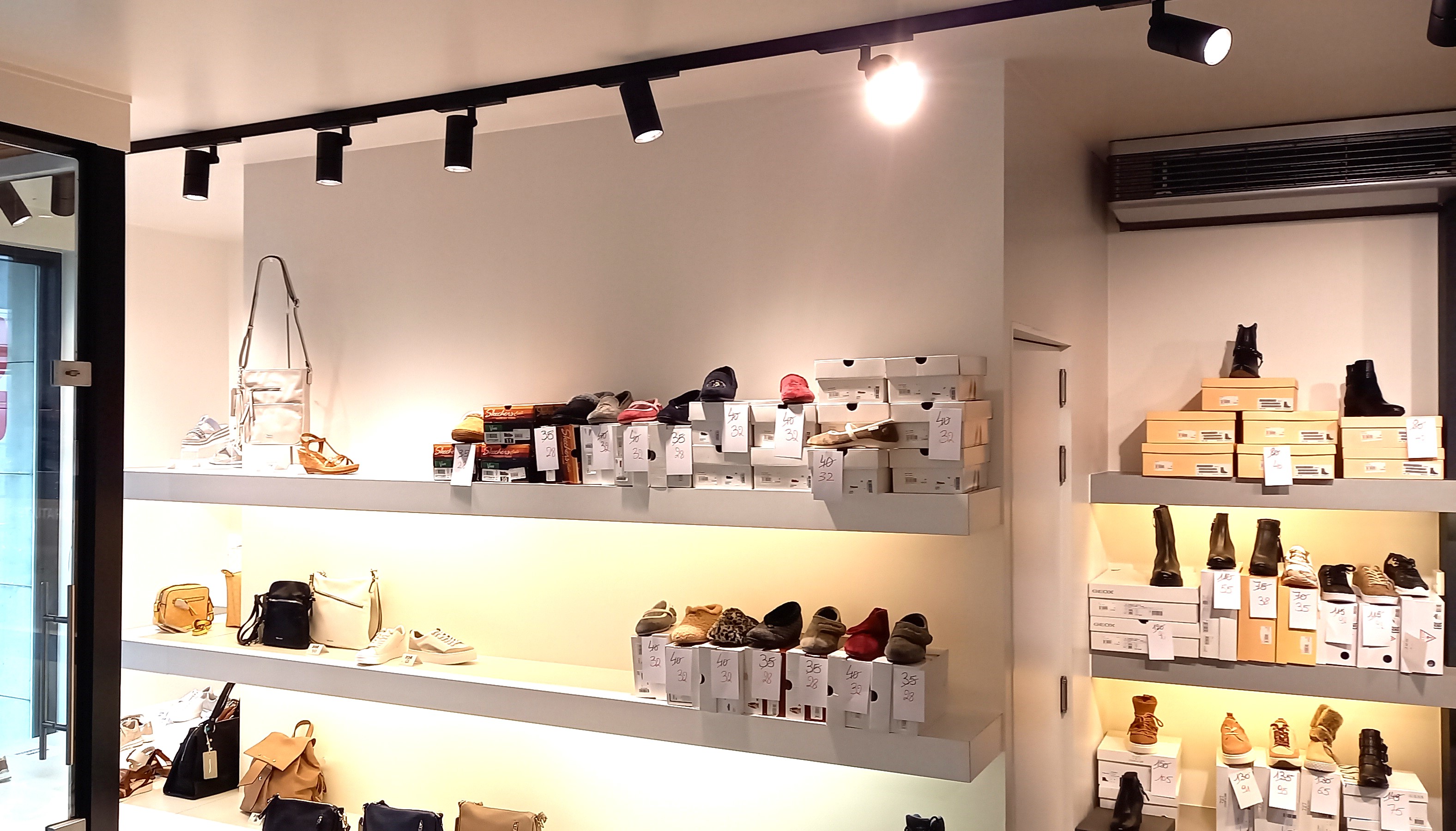 En intussen ook voor zijn zoon Matthias. Vroeger waren alle winkels door ons uitgerust met trackspots met de betere gasontladingslampen van 70W maar deze zijn nu allemaal vervangen door nieuwe toestellen. Nu gebruiken we LED-track toestellen van 27W met een zelfde lichtrendement en een nog beteren kleurweergave.(nu al meer dan 1000 toestellen over 10 winkels) Ook voor hun magazijn waar er nog oude TL-bakken hingen zijn deze nu vervangen door nieuwe toestellen met LED